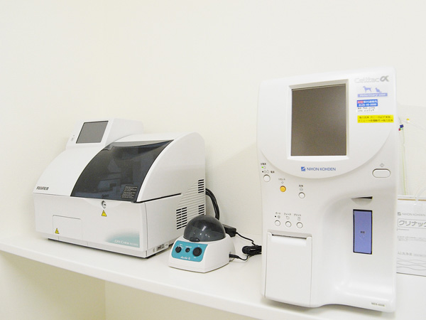 貧血や止血などの状態を調べたり、腎臓や肝臓などの状態を調べたりする機械です。 院内にて短時間で検査結果が分かるため、調子が悪い時でも素早く状況を把握できます。